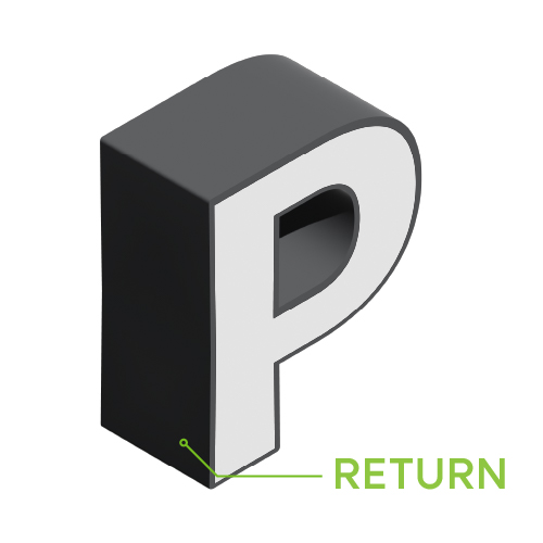 The returns form the sides of the channel letter, providing depth, strength, and a clean, professional profile.