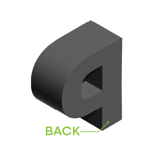 The back panel encloses the channel letter and supports internal components and mounting hardware.
